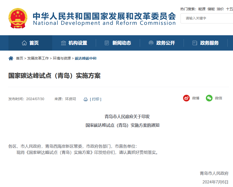 青岛市人民政府关于印发国家碳达峰试点(青岛)实施方案的通知