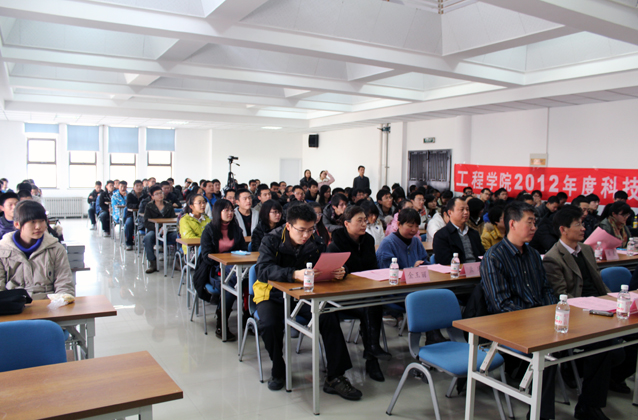 之后,会议进行了第二部分----颁奖仪式,主持人宣读了2012年度工程学院各科技竞赛的获奖团队与工程学院第一届工程制图大赛的获奖同学名单,各科技竞赛指导老师依次为获奖团队和个人颁发了证书与奖品。为表彰和奖励为工程学院科技创新活动作出突出贡献的优秀大学生,工程学院设立了“科技创新突出贡献奖”和“科技创新突出奉献奖”,陈小平等11名同学获得科技创新突出奉献奖,王新宝等22名同学获得科技创新突出贡献奖,工程学院科技爱好者协会获得优秀组织奖。