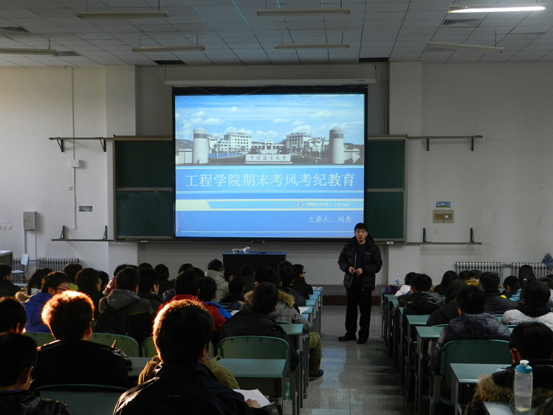 201313下午,工程学院本科生考风考纪教育讲座在44014402进行,每个年级按系划分为2组,海洋工程系和机电工程系一组,土木工程系和自动化测控系一组,总计进行了8场,参加学生近1500名。讲座由工程学院党委副书记刘杰主讲。
