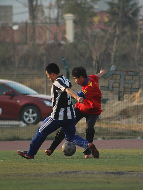 开场哨响,双方便展开了激烈拼抢。11机械采用的防守反击的战术,而10土木则侧重进攻。开场不久,10土木3名队员以短传切入迅速渗透到前场,眼看对方正逼近球门,11机械王成宇禁区前大脚解围。此后,10土木攻势变得更猛,战场中心向11机械球门方向推进。5分钟时,10土木王树兵抓住对方防守漏洞,左路插入对方禁区,11机械万伟舰紧跟防守,王树兵边线抽射,球直奔机械禁区,双方在机械球门前展开激烈拼抢,混战中,机械队员犯规,10土木获得点球机会。10土木吴量一脚低射,敲开了11机械大门,10土木以1:0领先,顿时队内士气大增。紧接着,11机械中场短传出现失误,被10土木马金林抢断,马金林带球单刀直入,11机械后卫拼命直追前来阻挡,面对4人夹攻,马金林加速势大力沉的一记低射,守门员扑救脱手,10土木又斩获一球将比分改写为2:0。面对此景,11机械改变了战术,加强了进攻。伴随着10土木王树兵接球失误出界,11机械迅速组织反攻,夏永杰与赵昆双翼齐飞,接连突破对方防守,直逼球门,而在临近禁区时,赵昆在传球与射门之间稍有迟疑,被对手抢断。此时,11机械也已找到节奏,双方对攻的局面就此拉开。进攻、抢断、反攻,此后比赛一直保持在这紧张的节奏中,球在双方前场迅速交替。然而,即使是有如此猛烈的进攻,双方都未能给同样拥有坚固防守的对方造成明显的威胁,双方多次进攻无果。哨声响起,上半场比赛结束。
