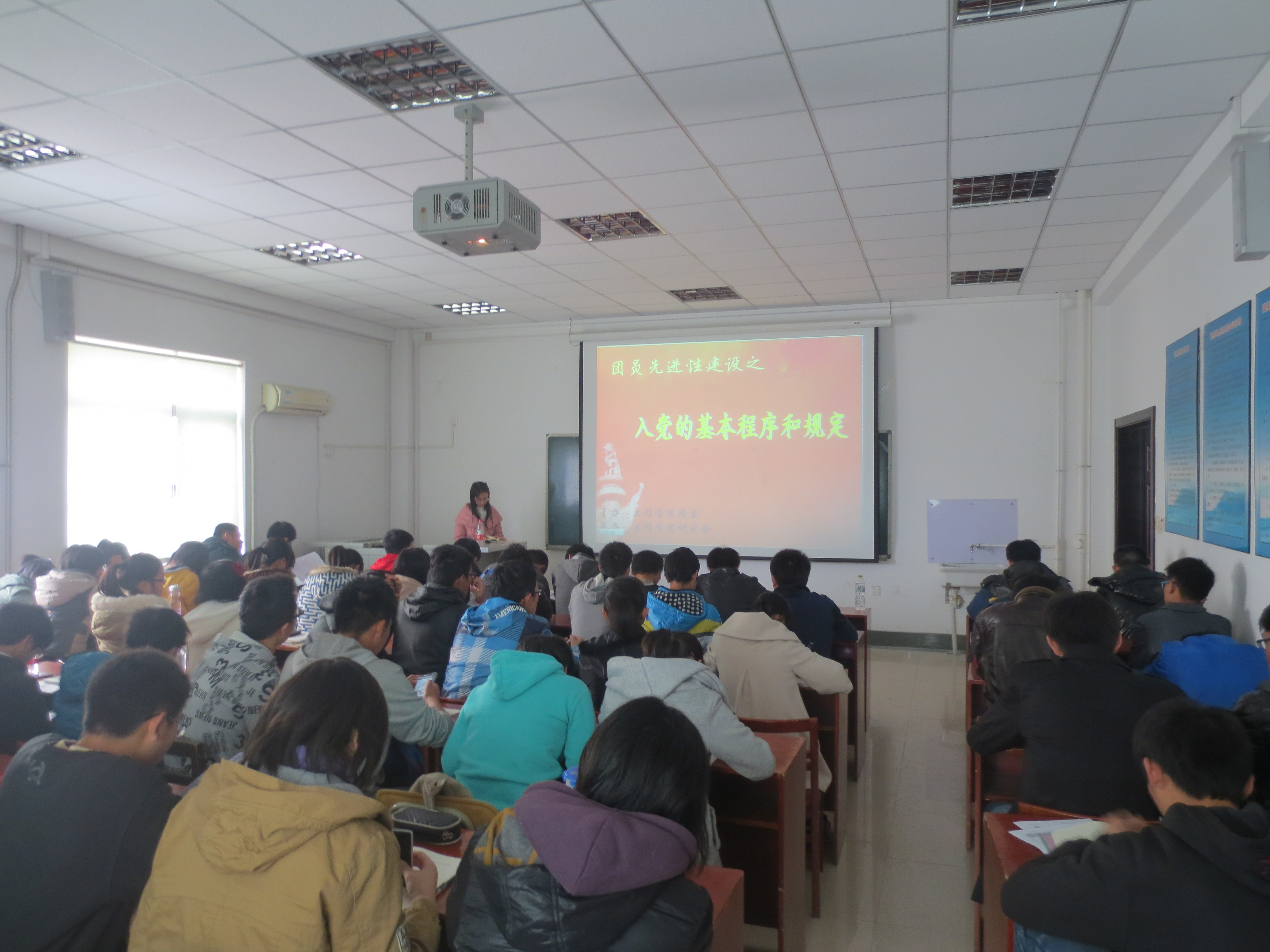 在简短的回顾之后,“团员先进性建设活动”的最后一期正式拉开了序幕。本次的主讲人是来自2010级自动化专业的张丽媛学姐,围绕着“入党的基本程序和规定”的主题,主讲嘉宾从“申请入党的条件与要求”、“发展党员的程序与手续”、“争取早日成为合格的共产党员”、“党员的义务与权力”四个方面向学员们讲授了相关知识。