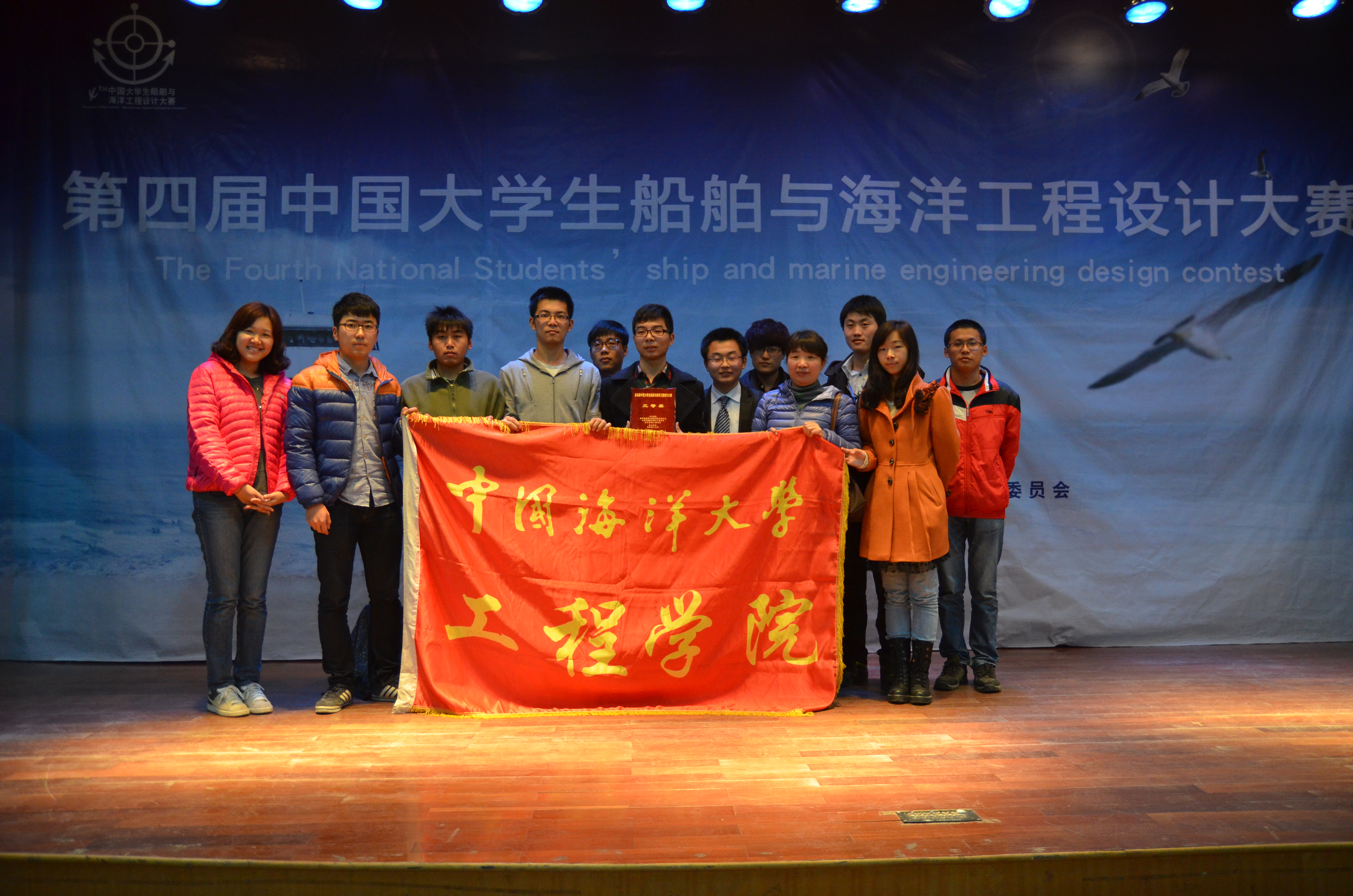 获奖学生与指导教师合影 2013年12月6日至8日,2013年第四届中国大学生船舶与海洋工程设计大赛在湖北省武汉市顺利举行。其中,由开云电竞网址工程学院的任志浩(2010级船舶与海洋工程)、寇彦芸、王新宝(2010级机械设计制造及其自动化)、陈杰峰、张元盛(2011级船舶与海洋工程)组成的本科生团队和由石锐峰(2012级港口、海岸及近海工程)、娄琦(2013级水利工程)、耿翱翔、范福河、王子月(2010级船舶与海洋工程)组成的研究生团队分别荣获三等奖和优秀组织奖。在孟珣和张敏老师的带领下,历经三天的准备、答辩,两支团队顺利完成了“漂浮式波浪发电装置”和“深海新型储油一体化浮式风机基础结构概念设计”的展示,获得评委一致好评。 中国大学生船舶与海洋工程设计大赛是由教育部高等学校海洋科学教学指导委员会主办的,面向全国高等院校在校大学生的一项科技创新竞赛活动,旨在通过竞赛培养大学生实事求是、刻苦钻研、勇于创新、团结协作的精神,增强船舶类专业学生的专业创新能力。该赛事也是目前规模最大、内容最全、层次最高、最具代表性的船舶与海洋工程领域大学生科技创新大赛。