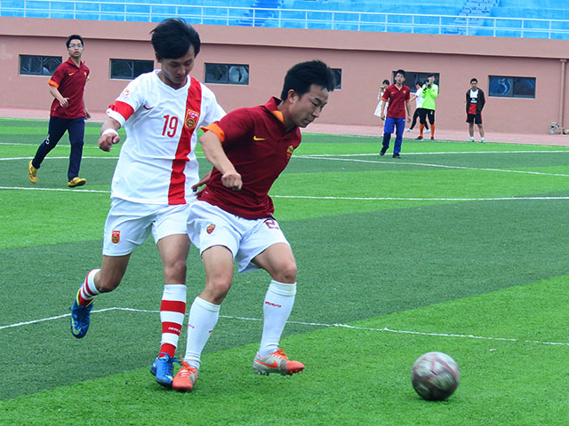 加时赛上下半场各10分钟,经过90分钟比拼两队的体能都已接近极限,场上不时出现队员抽筋倒地。双方一时陷入僵持,场面略显沉闷。随着标志着全场终了的三声长哨响起,本届“校庆杯”足球赛的冠军归属注定要以最残酷的点球大战方式决出。