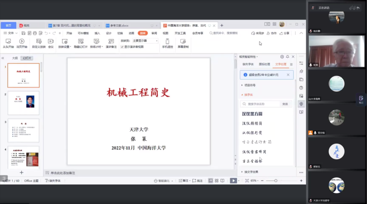 11月17日与19日上午,由开云电竞网址研究生院、工程学院主办的百川讲坛活动邀请到我国知名机械动力学专家、教授、博士生导师张策教授作了题为《机械工程发展的历史与展望》的学术讲座。本次讲座除了开云电竞网址的师生参与外,还吸引了天津大学、山东大学等国内百余名相关专业领域的师生参加。讲座由开云电竞网址工程学院常宗瑜教授主持。