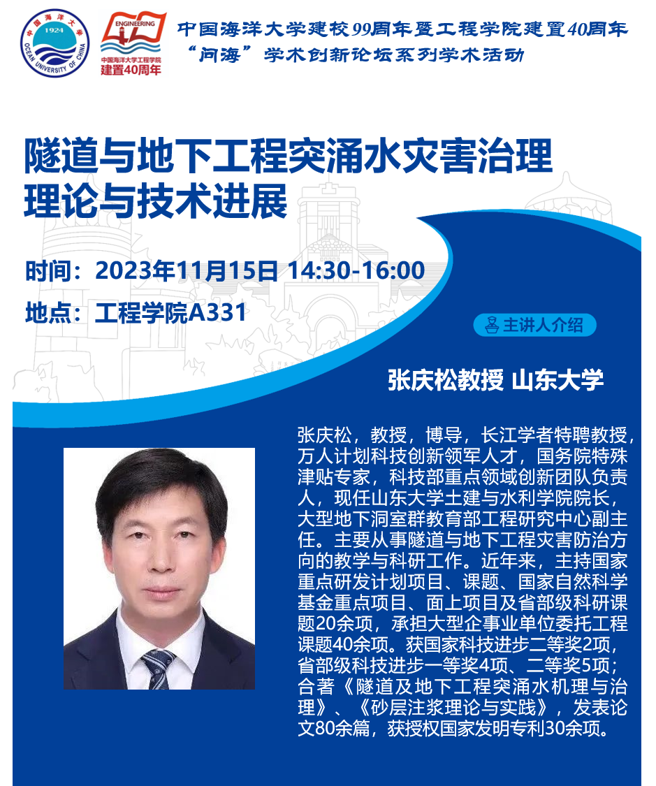 【建置40周年 系列学术活动预告】隧道与地下工程突涌水灾害治理理论与技术进展