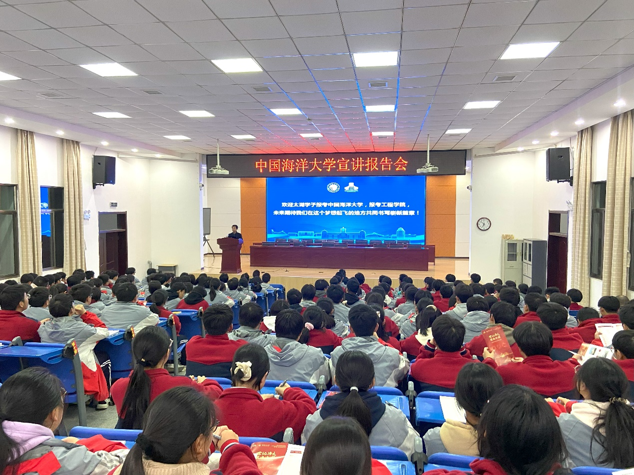 为深入推进大中小学思想政治教育一体化建设,进一步做好本科生招生宣传工作,持续推进本科生源质量工程建设,12月6日,工程学院院长梁丙臣教授带队赴安徽省太湖中学开展专家宣讲报告,通过专题报告介绍学校优势和学院特色,切实搭建起海大与中学之间沟通桥梁。
