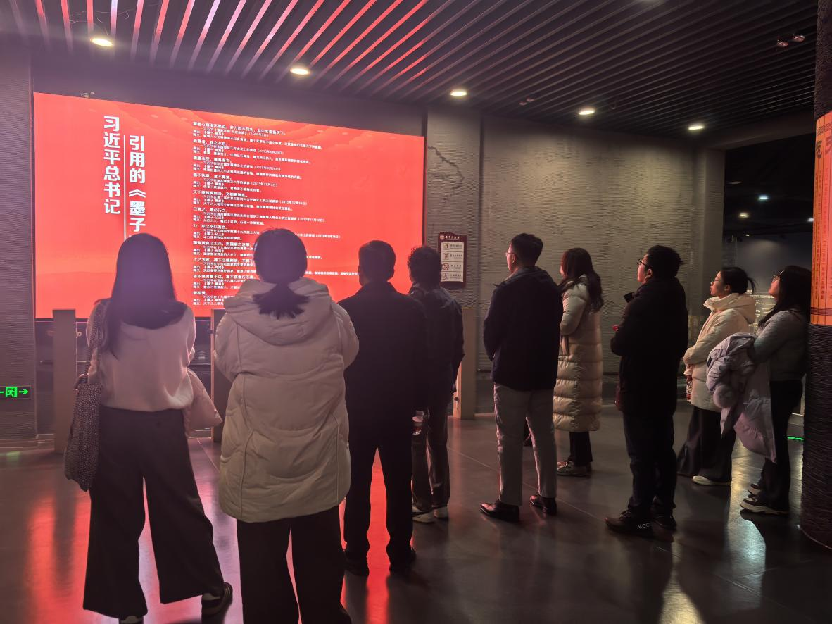 师生代表参观了滕州市墨子纪念馆,深入了解墨子的生平事迹。墨子的思想和发明既有深厚的历史文化底蕴,又具有前瞻性的科技视野。墨家学派是诸子百家中唯一侧重工程科技创新且广泛普及教育的学派,为我国优秀传统文化提供了宝贵的思想源泉。墨学有着天然的跨学科属性,其体系直至今天对于现代科研创新和工程实践教学仍具有重要参考价值。