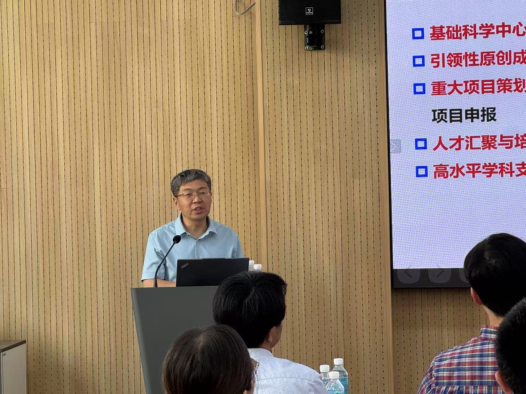 海岸与海洋工程全国重点实验室副主任、海洋工程装备基础科学研究中心执行主任、工程学院教授王树青介绍了海岸与海洋工程全国重点实验室、海洋工程装备基础科学研究中心的基本情况、核心任务和发展规划。王树青指出,为实现发展目标,落实国家部委政策要求和学校考核要求,创新“院士领衔战略方向—负责人分抓科研方向—团队闭环攻坚科技任务”的管理机制,建立运行管理机构,融入“一学院二学科三平台”协同发展格局,组建核心科研攻关团队,明确科研人员考核指标与政策倾斜。王树青强调,当前,海洋工程装备基础科学研究中心顺利通过学校自然科学基地2024年度考核,基础科学研究与关键技术突破并举,原始创新能力与服务行业能力显著提升,下一步,要力争实现结题优秀、获得连续资助,积极推动科技奖励、重大项目申报,深海资源开发等前沿领域基础研究,国家级人才引育实现突破。