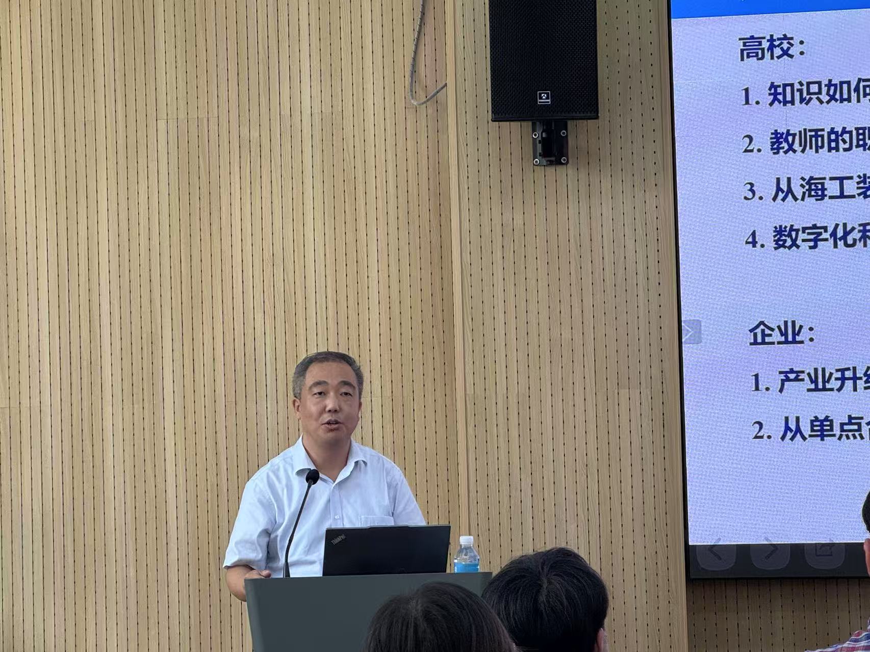 海洋工程与技术创新研究院执行院长、工程学院副院长黎明从源起、初心、成型、困惑、回归5个方面阐释了海洋工程与技术创新研究院建设发展思考,介绍了建设背景、机构设置、研究方向、“1+N”校企合作平台建设工作,对资金、项目、空间、人才等运行管理要素进行了政策解读。黎明分析了科技成果转化、高水平人才吸纳、日常运行管理等方面存在的困惑与难题,指出,为跨越“死亡之谷”,探寻新的增长点,必须突破核心技术、服务重大工程,构建开放平台、实现自我造血,形成发展生态、支撑人才培养。