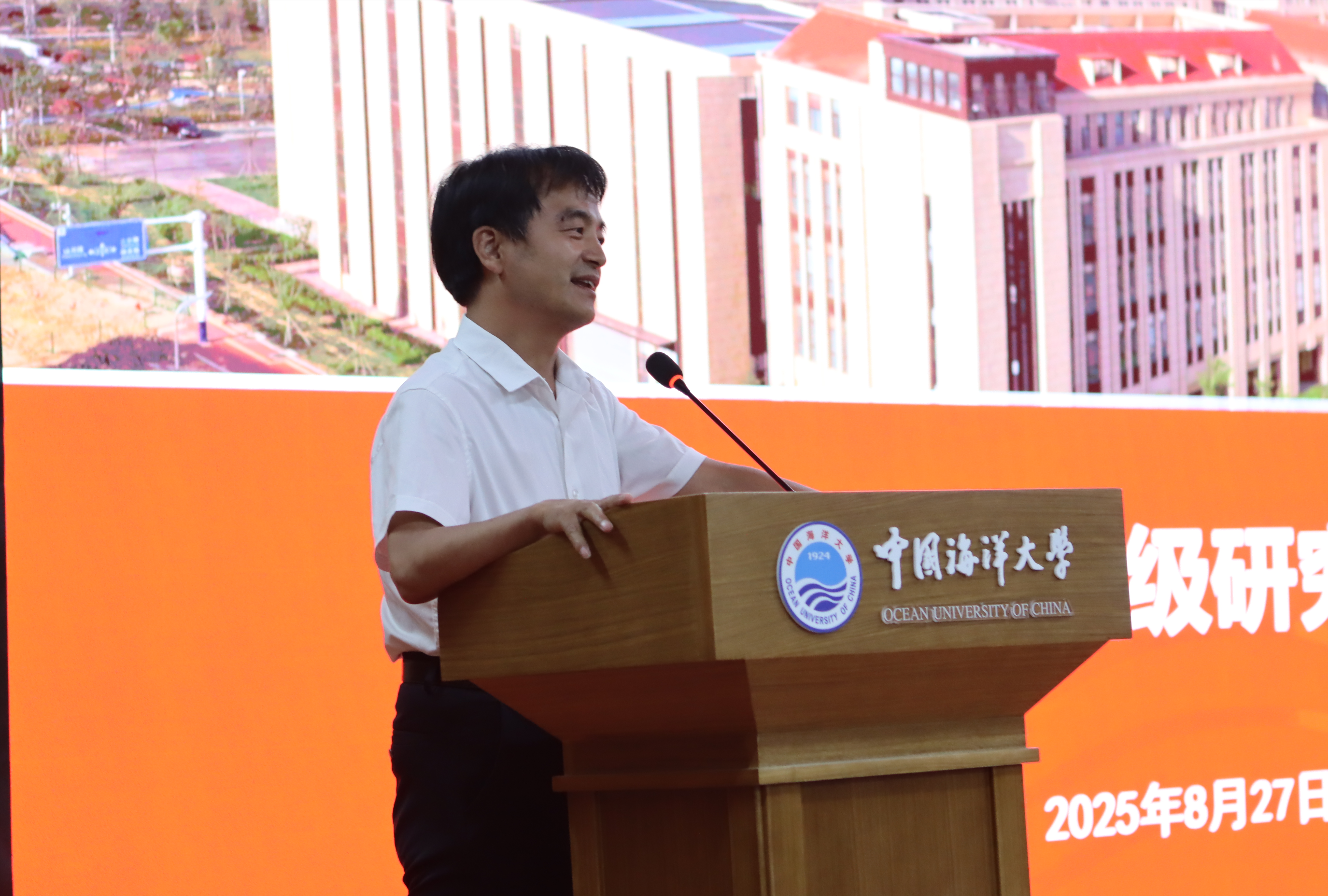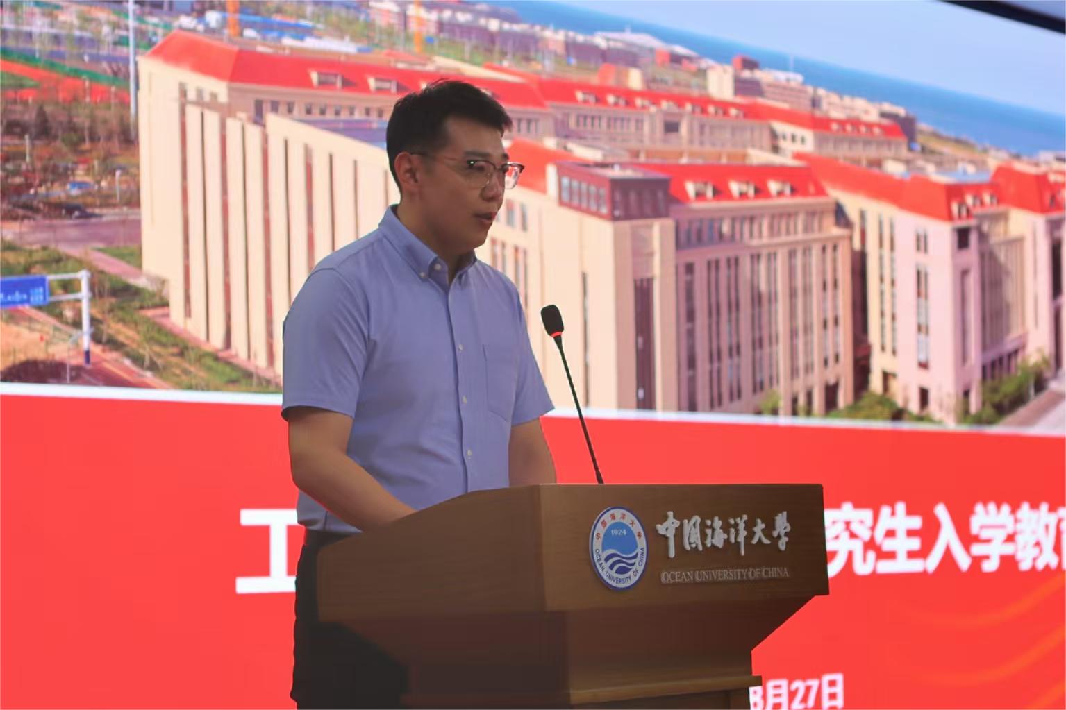 刘日霞代表学院对2025级研究生新生表示欢迎,她寄语各位新生以蓝色梦想为帆,以家国情怀为舵,在研究生阶段树立学术理想,瞄准国家需要,深耕专业领域,收获学术成果,努力成为胸怀蓝色梦想、堪当时代重任的优秀海洋人才。