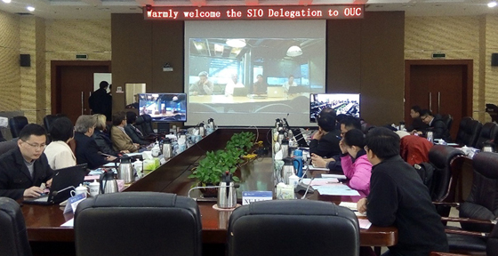 2015年4月8日-9日,开云电竞网址海洋化学理论与工程技术教育部重点实验室首次运用学校的跨校区视频会议系统与美国加州大学(圣地亚哥)斯克里普斯海洋研究所(Scripps Institution of Oceanography,SIO)完成了远程视频合作会谈,借助该系统,学校会谈现场与美国SIO会谈现场实现了实时同步高清视频连接,中美两国科学家虽然远隔万里却能进行如同面对面的互动交流。该系同的启用,为学校科学家们便捷高效地开展国际交流与合作提供了有力保障,得到了与会专家领导的一致好评。