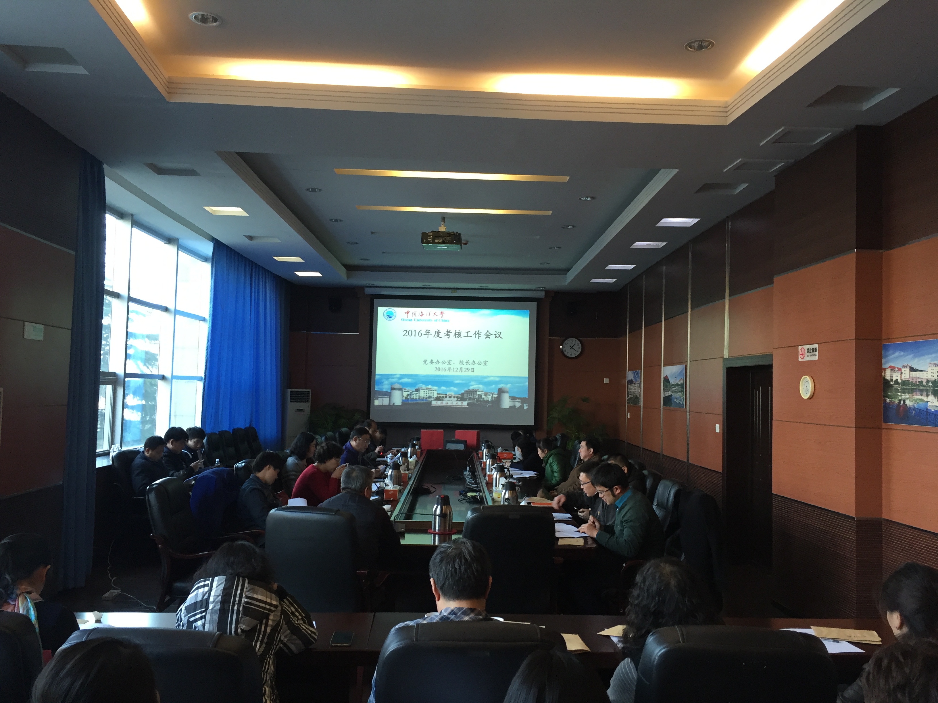 1229日下午,党委办公室、校长办公室在行远楼第会议室召开2016年度考核工作会议,办公室全体工作人员参加了会议。会议由办公室副主任刘日霞主持。