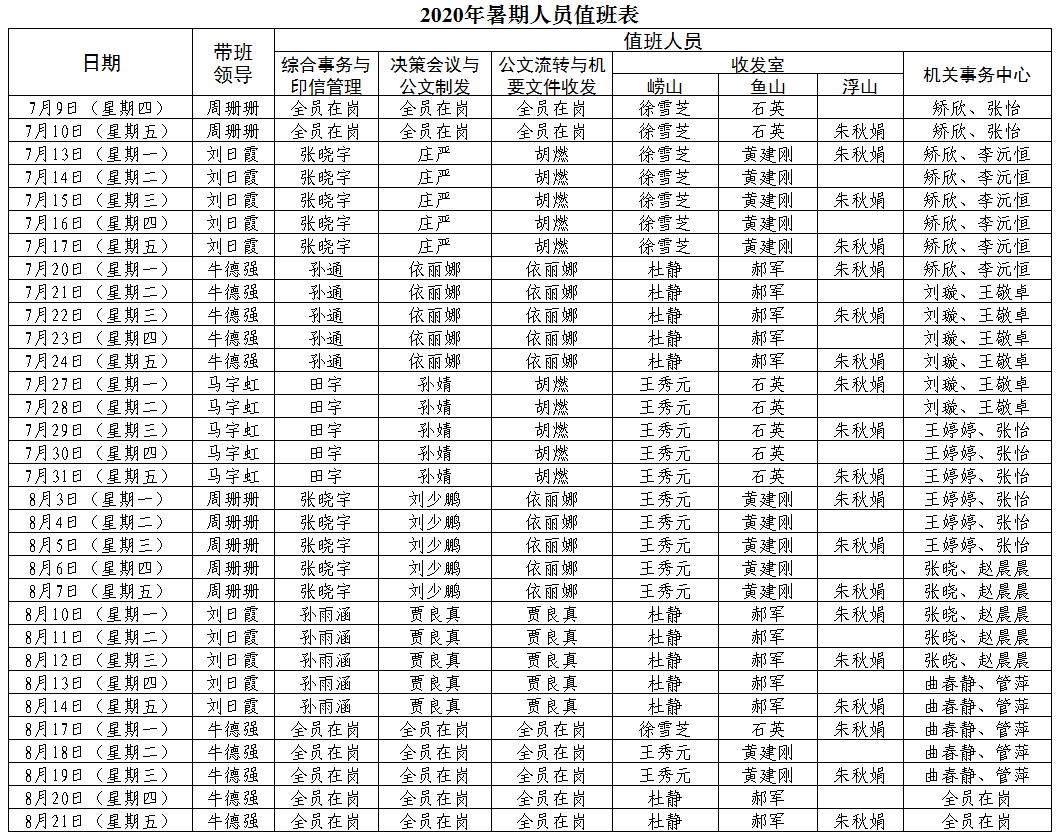 附件:2020年暑期人员值班表