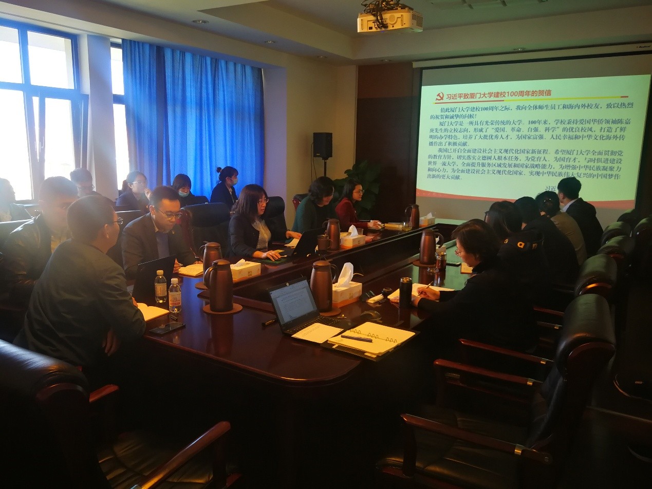 随后,周珊珊同志领学了习近平总书记致厦门大学建校100周年贺信精神,并简要介绍了赴厦门大学参加校庆活动的相关内容。