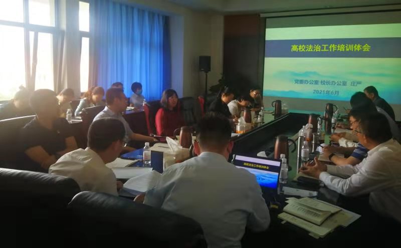 段文鹏同志、庄严同志分享了参加高校法治工作培训体会的学习体悟。庄严同志从党的教育方针和国家教育法律规范、习近平法治思想与习近平总书记关于教育的重要论述、高校法治工作的基本内容、建设高质量的高等教育体系四个方面介绍了所学所悟。段文鹏同志结合培训内容,借助中西方经典文化分析了中西方法制思想的差异,通过生动的案例阐述了当前高校法治工作的机遇与挑战。