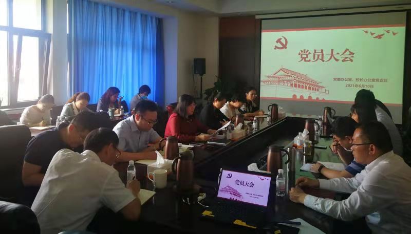 6月10日下午,党委办公室、校长办公室党支部召开全体党员大会。会议内容主要包括党支部支委会届中调整,党史学习教育集体学习以及“立学立身立德立业”分享交流等内容。党支部书记周珊珊同志主持大会。