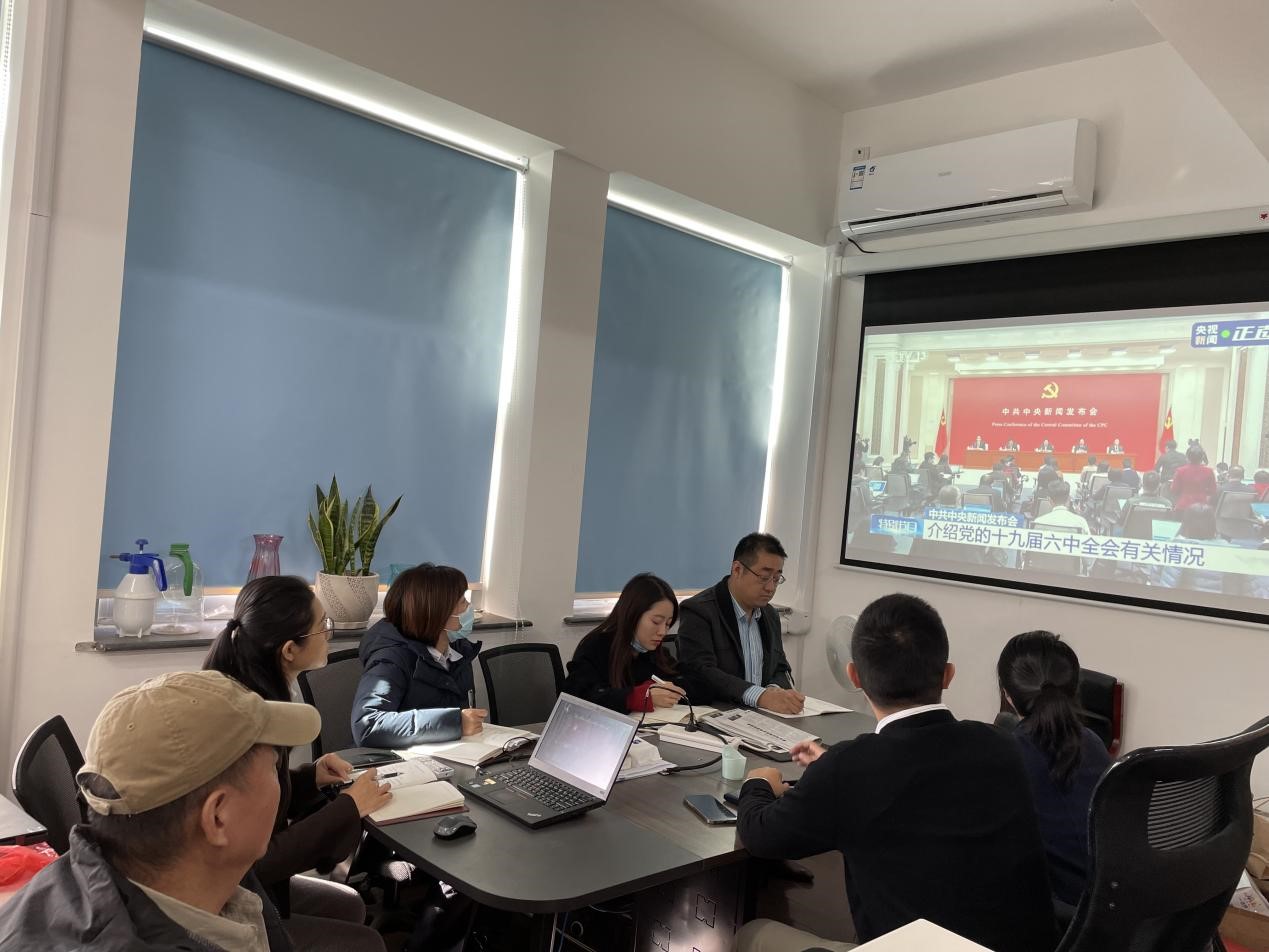党支部高度重视理论学习,通过多种方式及时、对照、深化学习此次全会精神。一是及时跟进学,在《公报》发布当天,即通过“微分享”的方式传达学习;二是对比对照学,将《公报》原文与习近平在庆祝建党100周年大会上的讲话对比对照,学习其中的新论断、新观点、新思想;三是深入解读学,全体党员以党小组方式收看11月12日上午举行的新闻发布会直播,加强对全会精神的把握理解。
