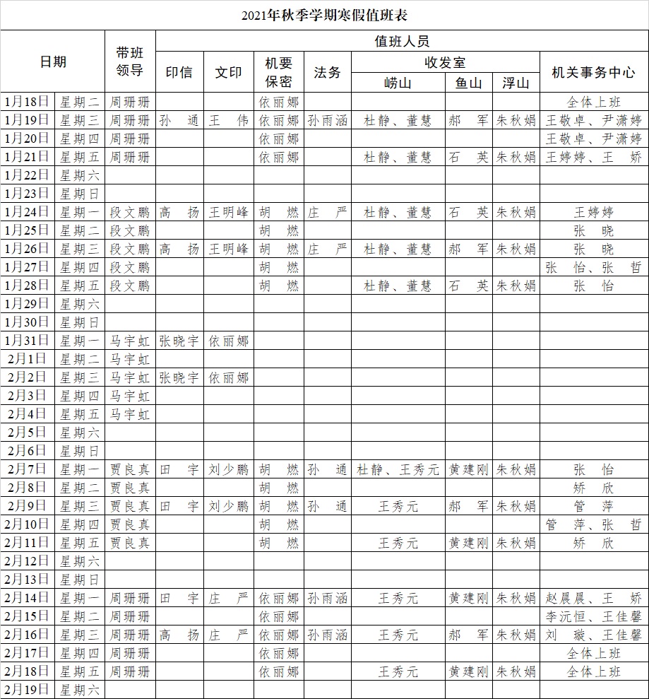 附件:2021年秋季学期寒假值班表