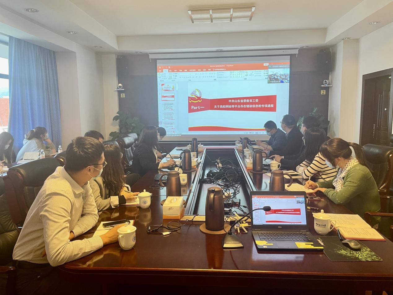 随后,张晓宇同志领学全国两会精神,通过36个关键词对2022年全国两会政府工作报告进行了分享,对政府工作报告中与教育相关的内容及亮点作了详细解读。庄严同志领学了有关规范化表述相关内容,结合有关政策文件对山东省、青岛市最新规范表述进行了解读,对政府网站和政务新媒体常见错误表述进行了梳理讲解。