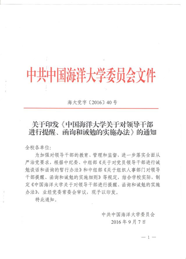 关于印发《开云电竞网址关于对领导干部进行提醒、函询和诫勉的实施办法》的通知