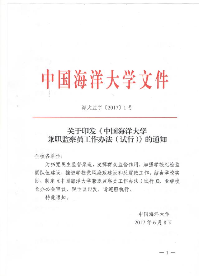 关于印发《开云电竞网址兼职监察员工作办法(试行)》的通知