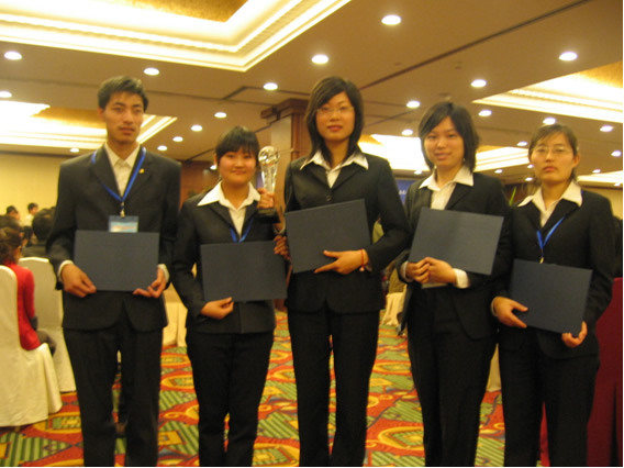 在经济学院国贸系李电生老师的悉心指导下,由经济学院03物流冯晓华、03物流员丽芬、03数学乔元波、04物流谢辰、04物流肖玉兰组成的代表队经过五个月的精心准备,在与全国450多个团队的角逐中脱颖而出,荣获大赛二等奖。决赛中,我校选手向来自全国各地的40多位专家评委们展示了海大学子的动手能力、策划能力和协调组织能力,为学校赢得了荣誉。