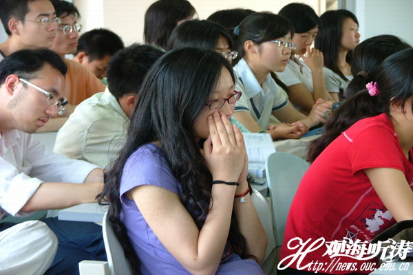 毕业生代表沈超和大家一起回忆了在海大四年的点点滴滴,“感谢恩师四年的谆谆教导,把我们引领到博大的世界;感谢至爱亲朋与我们一起欢笑,陪我们共度难关。”说到动情处,哽咽的话语宣示了毕业生们的不舍与留恋。他们把人生中四年最美好的年华献给了海大,在这里有他们青春的身影、奋斗的足迹,海大也给他们留下了四年最难忘的回忆。教师代表李莉怀着高兴与不舍的心情致辞毕业生,她欣慰地看着自己的学生在学业与思想上渐渐成熟、顺利毕业,依依不舍地说:“希望你们常回母校看看,母校会一直是你们坚实的后盾,老师会一直在这里等着你们的捷报频传。”激动与不舍在这一刻化为泪水流出,但正如在校生代表所说的:“回忆不能停住时间的脚步,留恋也必须擦干泪水继续前行。”