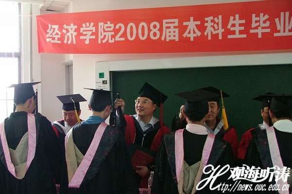 在在校生们的祝福中,毕业生们微笑着接过毕业证书和学位证书。至此,经济学院2008届毕业生典礼暨学位授予仪式结束,他们四年大学生活也就此定格。