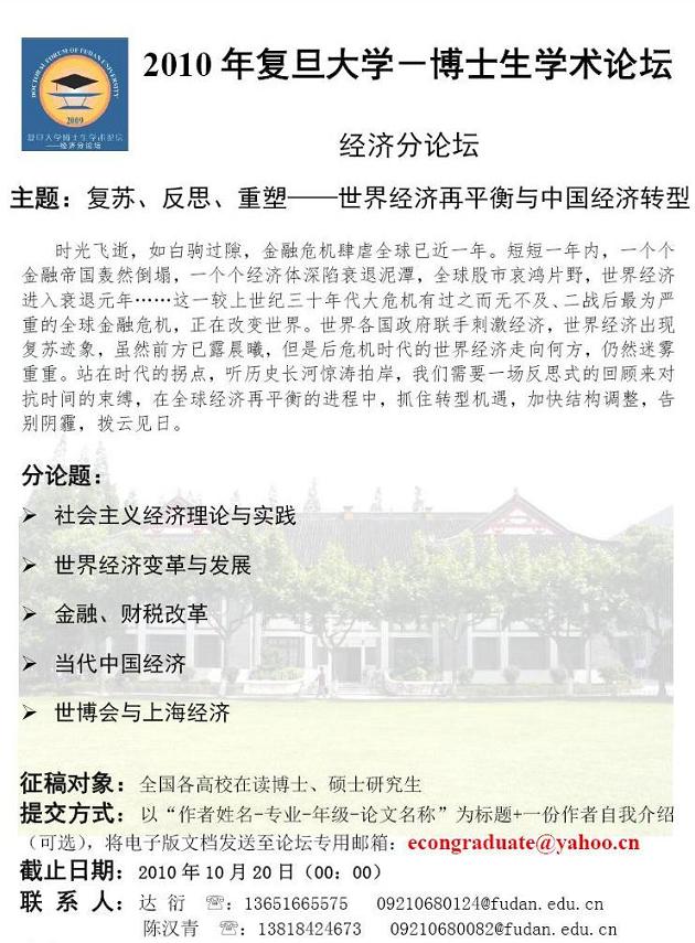 复旦经院博士生论坛征稿通知