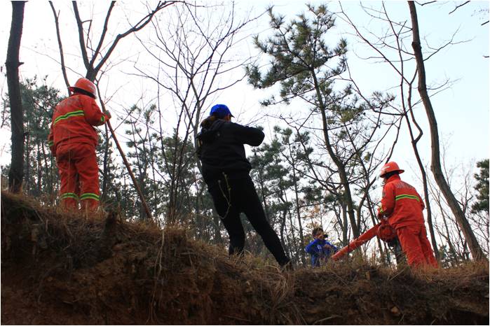 登山之前,有关负责人向我们介绍了山林火灾的危害,以及冬季山林防火的重要性。接着由消防人员向我们实地展示了防火器械的使用方法。分配给我们的任务是清理山上的垃圾、杂草,并将这些垃圾和杂草带下山,为山林防火略尽绵薄之力。
