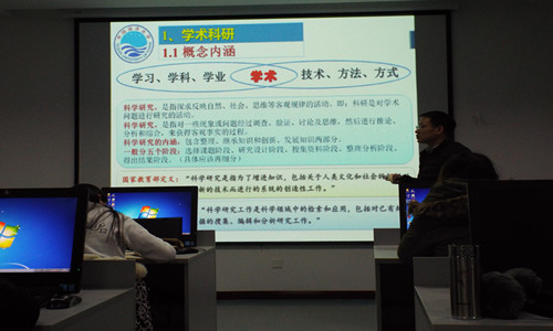 殷克东教授分别从学术科研、科研原则、科研方法、学术创新、国际经验、能力提升六个方面深入浅出的讲授了如何进行学术科研与创新。首先,殷克东教授从概念内涵方面讲述了什么是科学研究,科学研究是指为了增进知识包括关于人类文化和社会的知识以及利用这些知识去发明新的技术而进行的系统的创造性工作,并对科学研究的分类进行了界定,把科学研究的问题分为经验问题和概念问题。其次,殷克东教授认为学术科研过程是个漫长复杂的过程,要讲究一定的学术科研方法,并建议研究生们多运用发散性思维方式思考问题,追求卓越创新。最后,殷克东教授将国外的科学研究同国内进行比较,找出现阶段我国学术存在的问题,并提出国外学术研究中值得借鉴的地方,建议研究生们要培养发现问题的能力、方法和策略以及质疑权威的勇气。