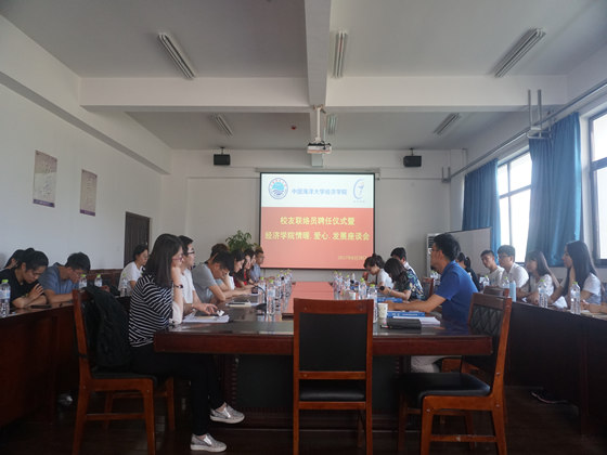 随后进行的是经济学院情暖•爱心•发展座谈会,各校友联络员代表踊跃发言,就学院教学方式、课程设置、培养方案、实习就业等方面与学院领导展开了热烈讨论。学院领导认真听取并记录各代表提出的建议和意见,并进行详细的解答,并表示对会议上未能解决的问题尽快制定解决方案。