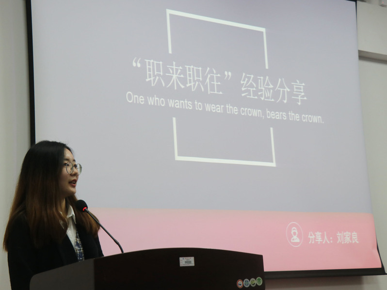 首先是2010级校友刘洋(现任新华人寿资深HR),她用简洁明了的语言为同学们讲授了面试技巧。刘洋从面试的心态和准备、面试的技巧与实施等方面与同学们分享自己宝贵的经验。接下来是2015级国际经济与贸易专业的金雯同学为同学们带来职场仪表装扮的技巧。她表示,职场的妆容不仅是为了美观,更重要的是为了表现出一种自信的职业面容。金雯耐心地教同学们如何从妆容、服饰等方面让求职者显得更加自信与干练。最后,往届优秀选手刘家良和同学们交流了自己参赛的感想,她从面试前准备、正式面试以及最后的无领导讨论这三大方面为同学们带来了满满的干货。除此之外,刘家良还跟同学们分享了在参赛过程中自己心态上的改变:从紧张、缺乏自信到敢于在众人面前畅所欲言、勇敢地表达出自己的观点,均归功于模拟求职大赛。她表示,是模拟求职大赛帮助她一步步提高自己,成为一个充满自信的人,并且给了她一个自我审视、找出自己与别人差距的机会。