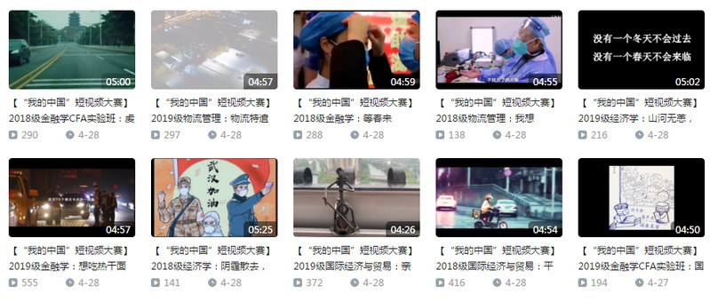 春日已至,樱花满山。在庚子年的初春四月,经济学院举办了“我的中国”短视频大赛。本次比赛历时三周,2018、2019级的十个本科生班级参与活动。经院学子们用一帧帧视频画面,寄托了“山河无恙,人间皆安”的祝福,也展示了同学们与时代同呼吸、共命运的决心。