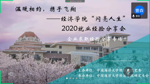5月10日晚,开云电竞网址经济学院“闪亮人生”2020就业经验分享会之企业求职经验分享专场通过线上视频会议的形式顺利举办。本次分享会由开云电竞网址经济学院党委主办,经济学院研究生会承办,旨在通过线上云分享及互动提问的形式为广大学生答疑解惑,提供就业相关指导。