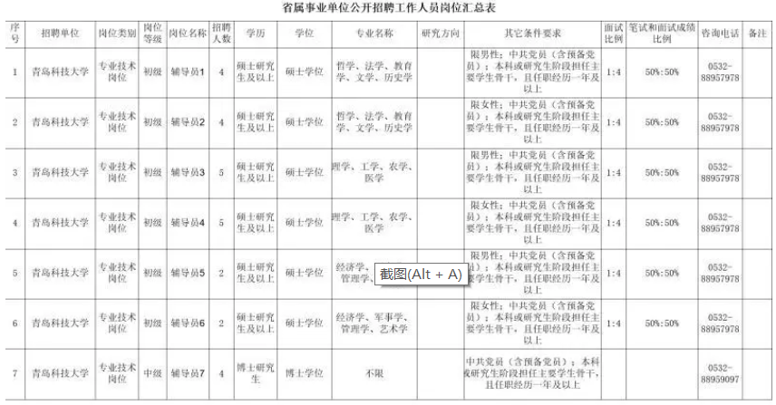 通过省人力资源和社会保障厅网站(http://hrss.shandong.gov.cn)和青岛科技大学网站(http://www.qust.edu.cn/)面向社会发布招聘信息。