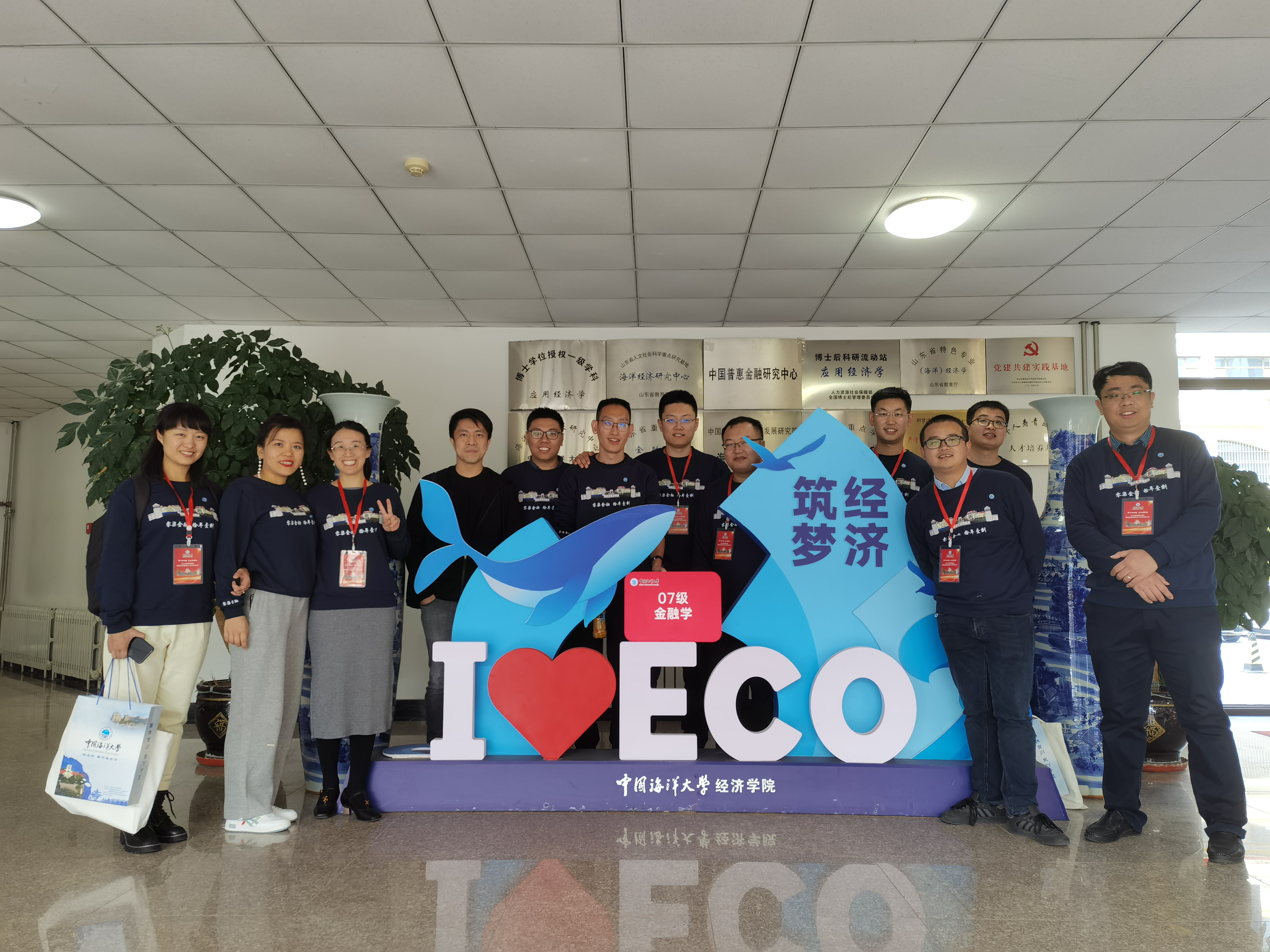 10月23日下午,经济学院安排同专业在校班级志愿者对接各班级返校校友,并为返校校友们准备了独具特色的海大纪念品。