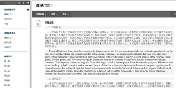 Bb平台是学校向师生提供的数字化信息管理平台,通过上传课程简介、课前预习材料、课堂使用材料和课后拓展材料,起到课堂预习和课后巩固的作用。老师利用通过Bb教学平台通知教学安排、进行签到考勤、布置作业等等,为课程的顺利开展提供完善的前期保障。