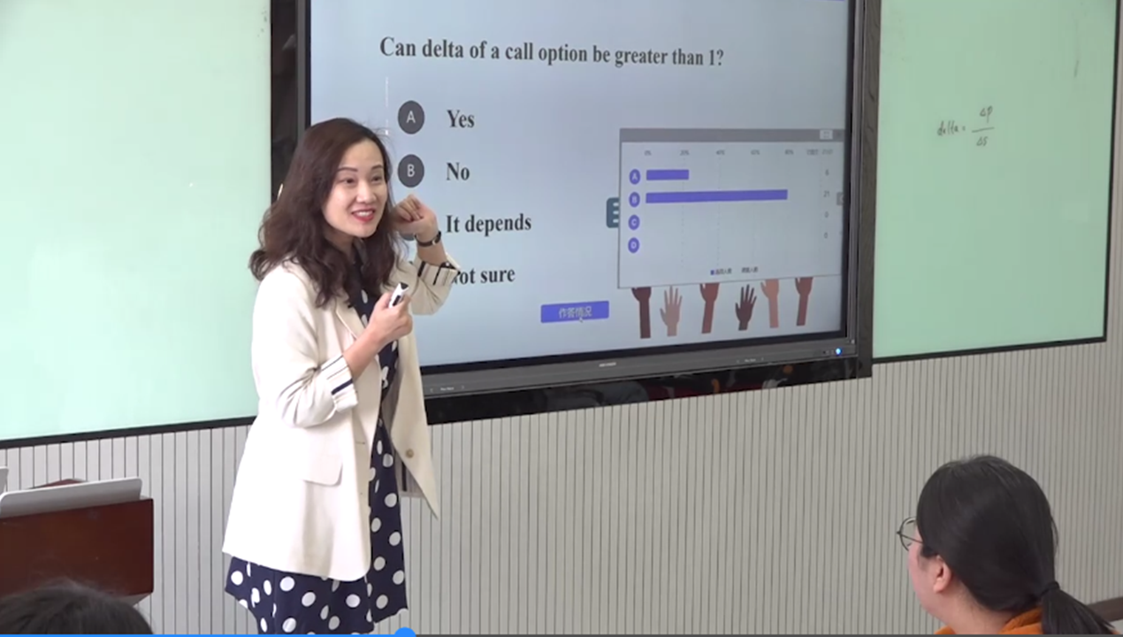 郭晶老师团队主讲的《金融风险管理(双语)》是山东省一流本科课程,利用线上线下相结合的方式,从时空上对双语教学进行重构,将中文教学前置到课前完成,课堂上采用全英文授课,通过互动式教学,为学生提供更多使用英文交流的机会,真正实现语言学习和专业学习“1+1>2”的效果。教学团队近年来专注于教学改革,在双语教学、混合式教学与课程思政建设等方面取得了显著的成绩,获得省级以上教学奖励8项;承担省级以上教改项目12项,发表教研论文5篇。