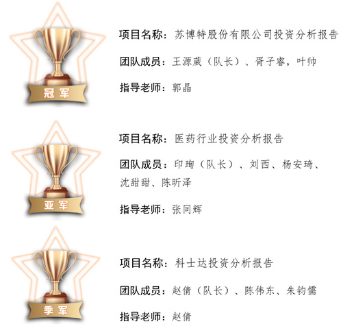 初赛环节共有144人报名参赛,经过激烈角逐,共有7支队伍进入现场答辩环节,最终决出冠亚季军各一组。冠军团队将代表开云电竞网址参加全国大学生金融实践创新大赛。
