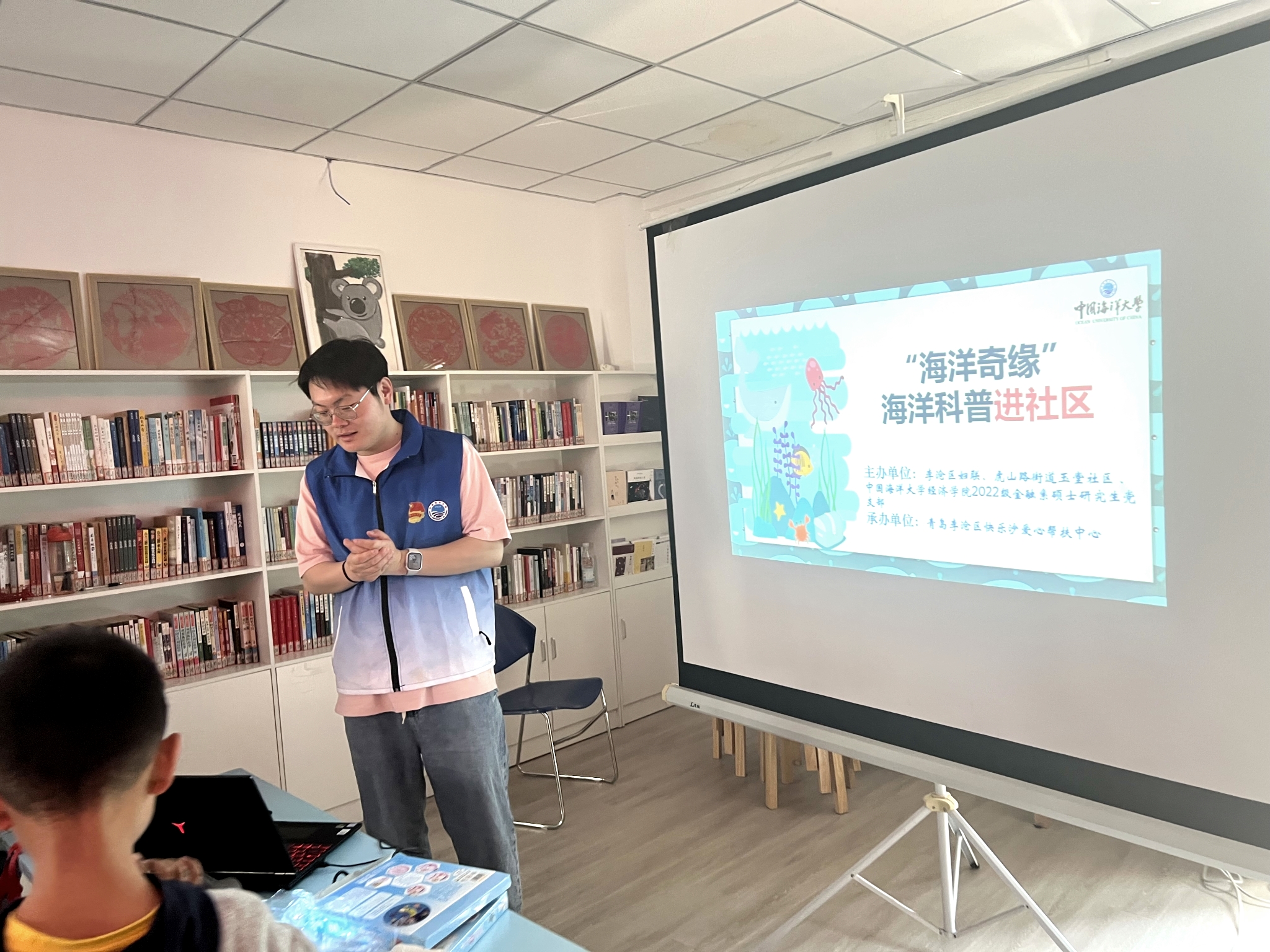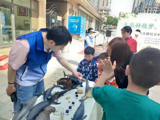 为宣传和普及海洋知识,有效助推全民科学素质提升,经济学院2022级金融系硕士研究生党支部(以下简称“22金融研党支部”)开展“海洋奇缘”海洋科普进社区活动,分别走进李沧区九水街道九水东路社区、宾川路社区,虎山路街道玉堂社区。通过讲解标本、互动游戏等形式科普海洋生物知识,引导社区居民及青少年认识海洋、保护海洋。