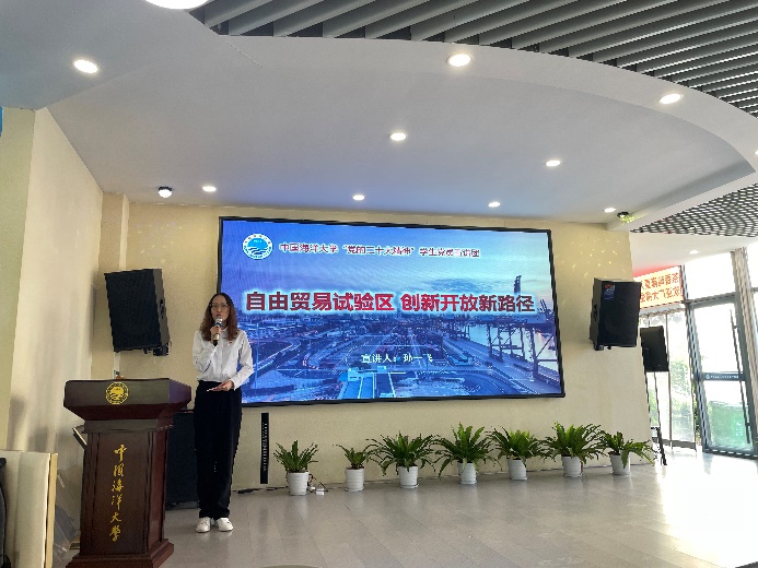 紧接着,孙一飞作了主题为“自由贸易试验区,创新开放新路径”的宣讲。她围绕“什么是自由贸易试验区?”“设立自由贸易试验区到底有什么好处?”“自由贸易试验区越来越多,含金量会不会随之降低?”“新的十年,自由贸易试验区如何继续发光发热?”四个问题展开,对我国自由贸易试验区的产生背景、分布、发展方向以及设立自由贸易试验区的好处进行讲解,带领大家感受中国共产党在着力推动我国经济高质量发展的进程中所做出的不懈努力。
