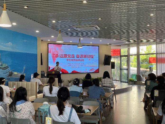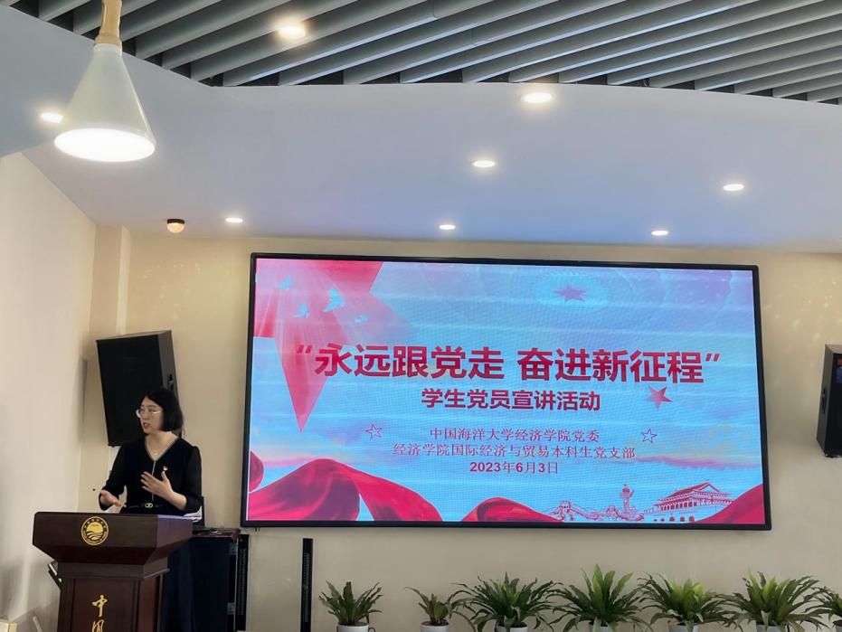 为深入学习宣传贯彻党的二十大精神,教育引导广大青年学生更加紧密团结在以习近平同志为核心的党中央周围,坚定不移听党话、跟党走,立志做有理想、敢担当、能吃苦、肯奋斗的新时代好青年,6月3日上午,经济学院党委在学校南海苑学生社区第四食堂组织开展了“永远跟党走 奋进新征程”学生党员宣讲活动。活动由国际经济与贸易本科生党支部承办,经济学院党委副书记、副院长迟瑞娟,经济学院党委专职组织员孙鹏静,经济学院辅导员王译萍出席活动。