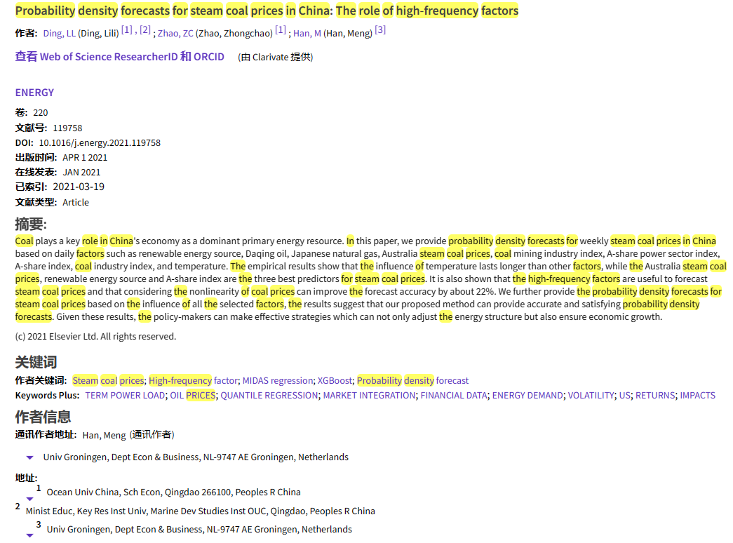丁黎黎等-Probability density forecasts for steam coal prices in China: The role of high-frequency factors