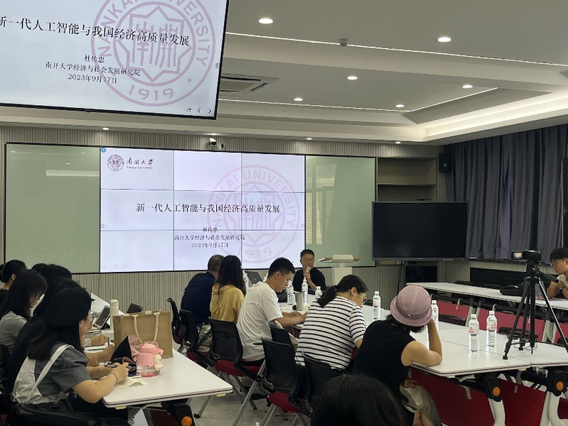 2023年9月17日上午9时,海大人文讲坛系列专家讲座《新一代人工智能与我国经济高质量发展》在经济学院112室举行。本次人文讲坛由经济学院承办,经济学系教工党支部组织、2022级经济学系硕士研究生党支部协助开展,讲座由南开大学杜传忠教授担任主讲嘉宾,开云电竞网址经济学院纪玉俊教授主持。