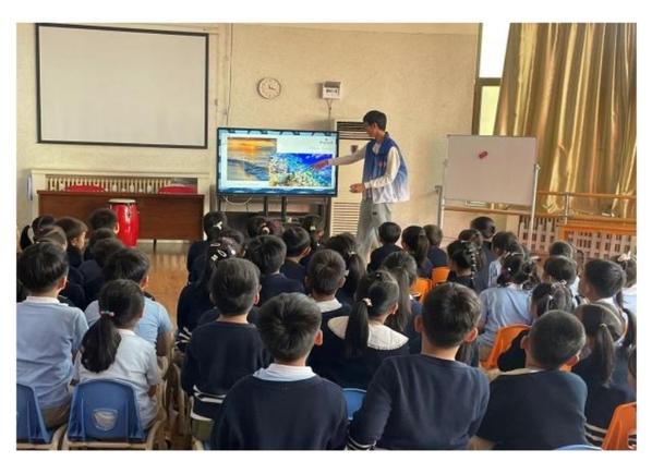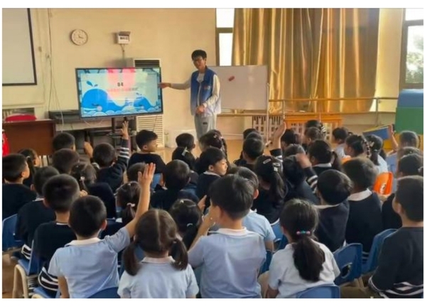活动的第一环节由一张被核废水污染后的海洋图片开启,在志愿者的讲解下,社区青少年意识到了保护海洋离不开每个人的努力。随后,由志愿者通过大屏幕向青少年们展示了剑鱼等海洋生物标本图片以及翻车鱼、海葵等海洋生物图片,加深了社区青少年们对各种海洋生物的认识。随着幻灯片里一张张海洋生物照片的放映,孩子们热情高涨,积极学习海洋知识,现场气氛活跃。