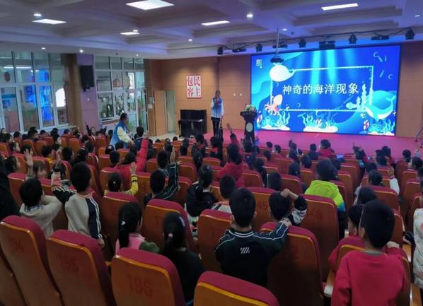 活动伊始,志愿者安莉萍声情并茂地讲解精美的海洋生物图片,将同学们的目光引向了海洋生物的奇妙世界。她用通俗易懂的语言,详细介绍了各种奇特的海洋生物,引发了同学们对海洋生物的好奇心和探索欲望。随后,志愿者为同学们详细讲述了海洋灾害的种类和危害。通过真实的案例和生动的图片,让同学们深刻认识到海洋灾害的严重性和防范措施。同学们在惊呼之余,纷纷表示会远离海洋危险,确保自身的安全。接下来,主持人向大家展示了当前海洋所面临的污染现象,通过具体的图片和实例,揭示了污染对海洋生态系统的严重危害。同时,她呼吁同学们要树立环保理念,保护海洋环境,共同维护这个美丽的蓝色星球。