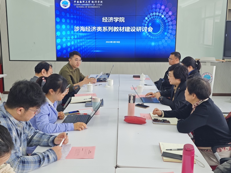 为进一步推动经济学院教育教学高质量内涵式发展,深化应用经济学科海洋特色,2024年3月18日上午,经济学院于112会议室顺利举办涉海经济系列教材建设研讨会。会议由金融系副主任王垒主持,学院院长赵昕,学校教务处处长、学院分管本科教学副院长丁黎黎,学院本年度拟出版涉海经济系列教材编写专家参加会议。