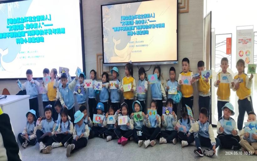 接着志愿者围绕经济视角,以“海岸带经济”这个专有名词引出海岸带的价值所在,并引导同学们思考海岸带的价值,同学们积极举手,踊跃回答问题。志愿者们还以一组对比照片直观的展示了海岸带昔日的荣光与现在受到的污染情况,向同学们介绍了海岸带当今面临的种种危险,引导大家明白保护海洋,保护环境的重要性与其意义所在。之后,志愿队成员与幼儿园老师一同带领同学们进行海洋立体画DIY制作,一同制作海洋立体画,认识各种海洋生物。
