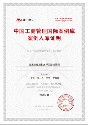 本届“中国工商管理国际最佳案例奖”于2023年5月1日启动征集,10月13日截止投稿,共收到来自海内外120多所院校和机构700多位作者的参赛案例303篇。每一篇案例都经过了初审、盲审、学科编辑评审三个阶段的严格评审和遴选,确保公平公正。此次《亚太药业股权质押的治理黑洞》的入选,是对经济学院教师案例开发能力和教学成果的充分肯定,对于经济学院MBA(金融方向)专业学位教学水平的提升具有重要意义。